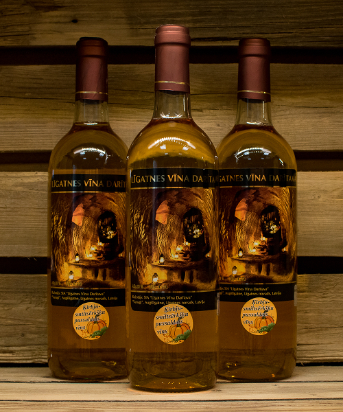 Līgatnes vīna darītavas vīndaris Ainars Vanags izdomāja, kāpēc gan lai nevarētu pamēģināt pagatavot arī vīnu no šīs ogas. Aizraujošs ir ne tikai ķirbju audzēšanas process, kad nezini, cik daudz un cik lieli tie izaugs, bet arī vīna gatavošanas process gaidot, kādas garšas nianses atvērsies dzērienā.